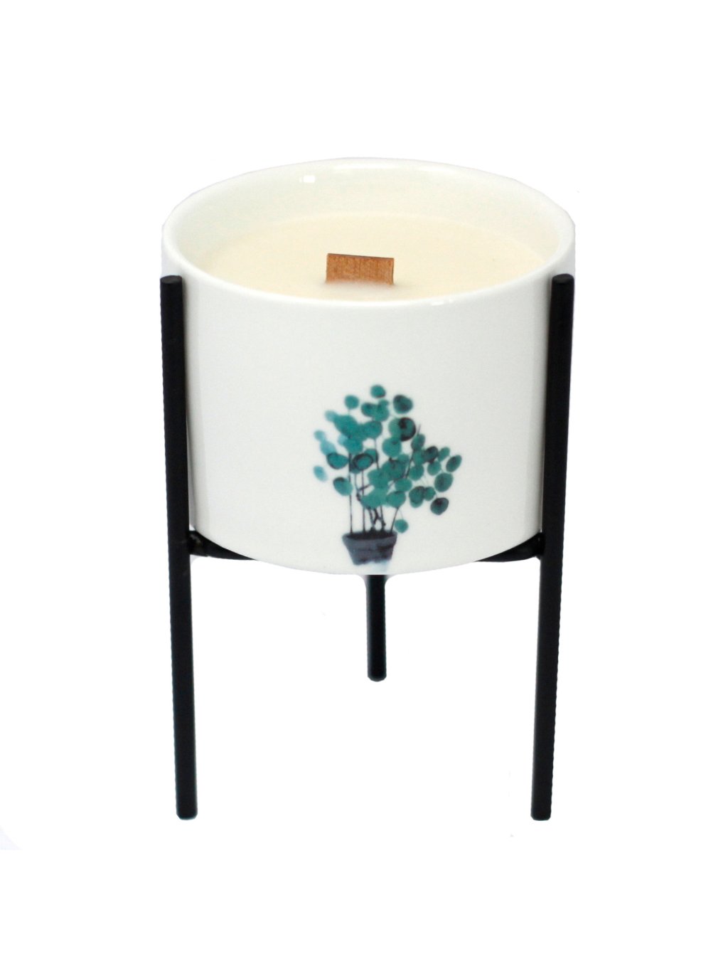 Minimalistický design, dvojitý dřevěný knot, sojový vosk a elegantní železný držák.