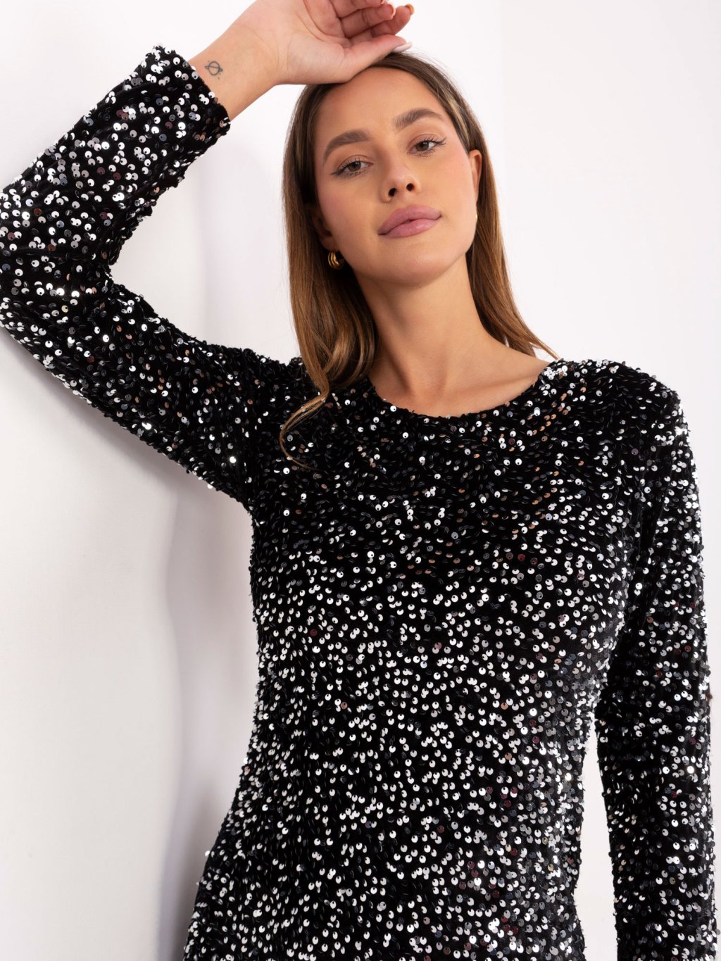 • 🤩 Dlouhé rukávy a asymetrický výstřih – nepřehlédnutelný detail vhodný na večerní události.