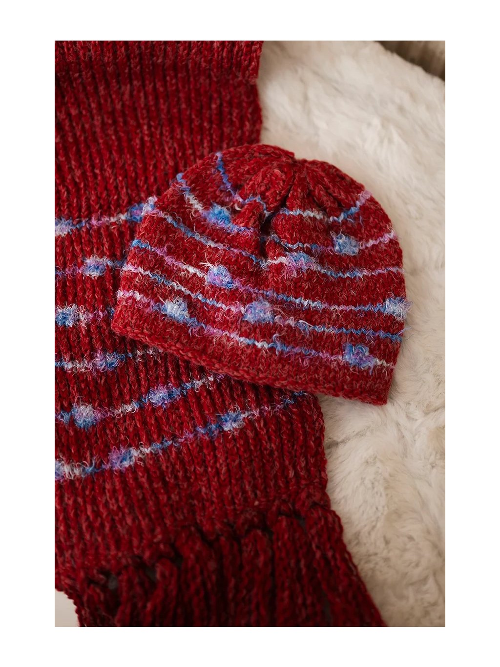Tato krásně sladěná pletená sada se skládá z hřejivé čepice a dlouhé šály s třásněmi. Díky kombinaci vlny a akrylu tě spolehlivě ochrání před chladem, zatímco výrazné pruhy dodají šmrnc každému zimnímu outfitu. Vhodné jak do města, tak i na zimní výlety. 💫☃️