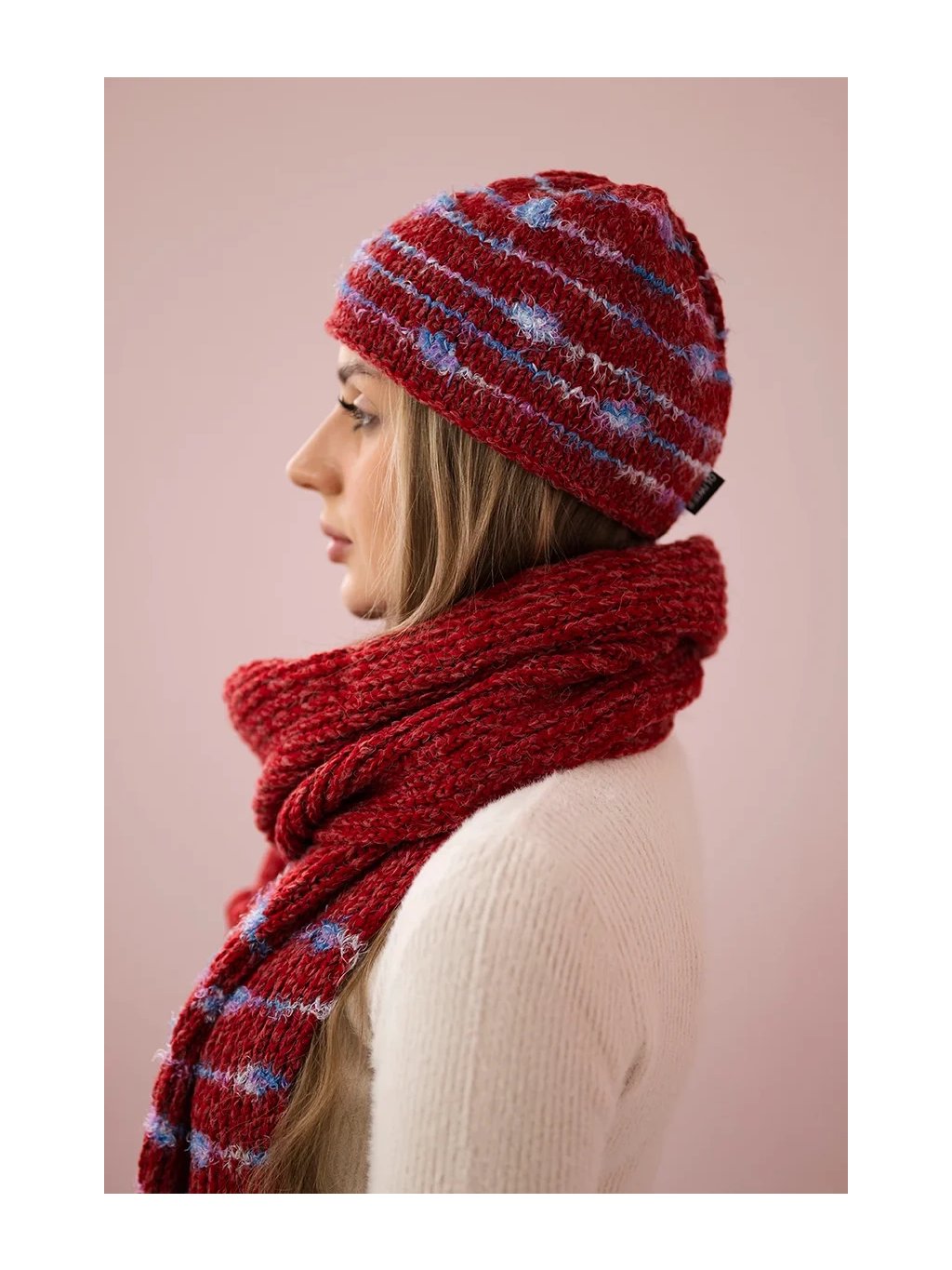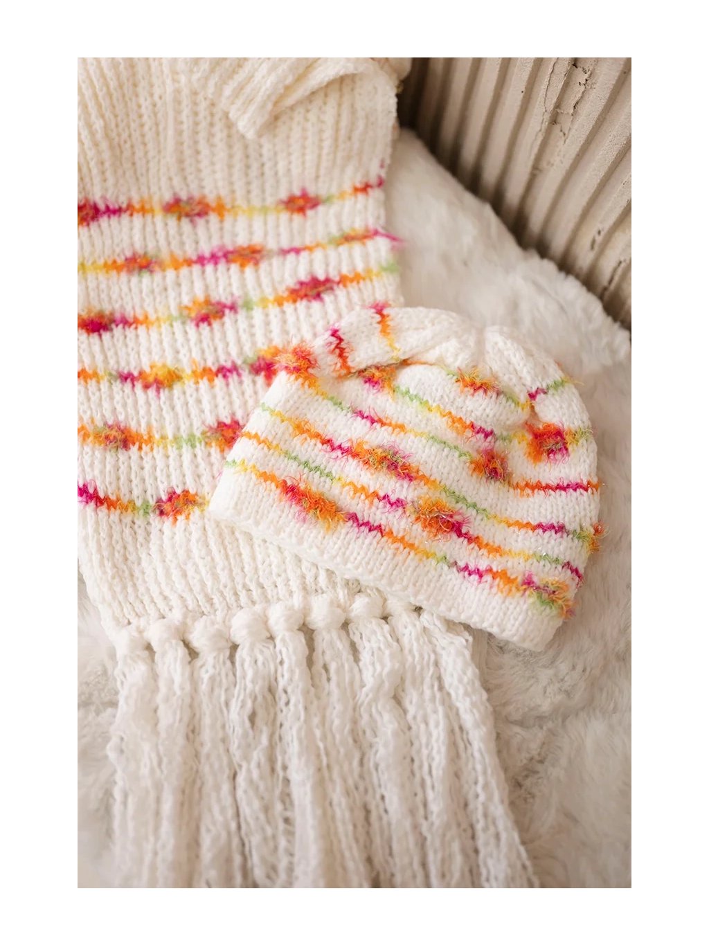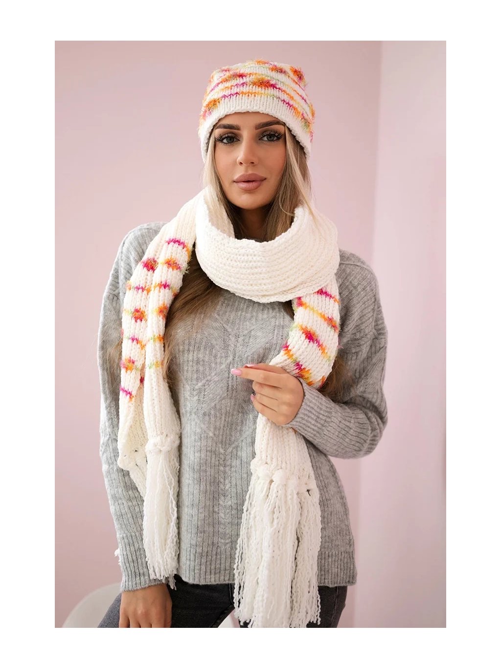Dámská zimní sada s pruhovanou čepicí a dlouhou šálou – výrazný a hřejivý komplet pro chladné dny. 💕🧣