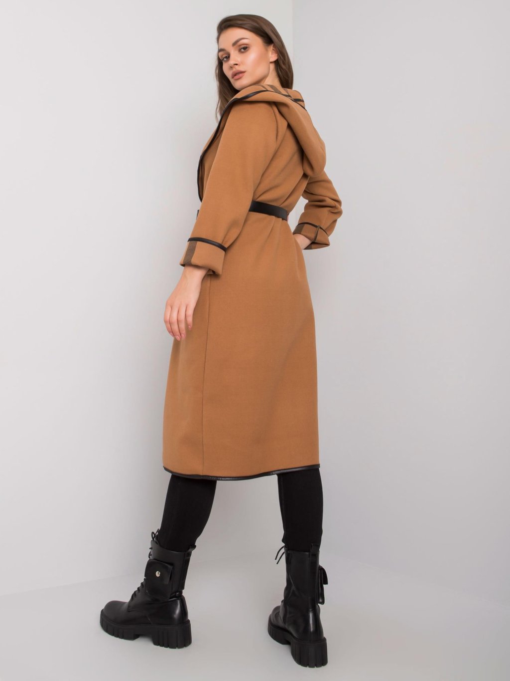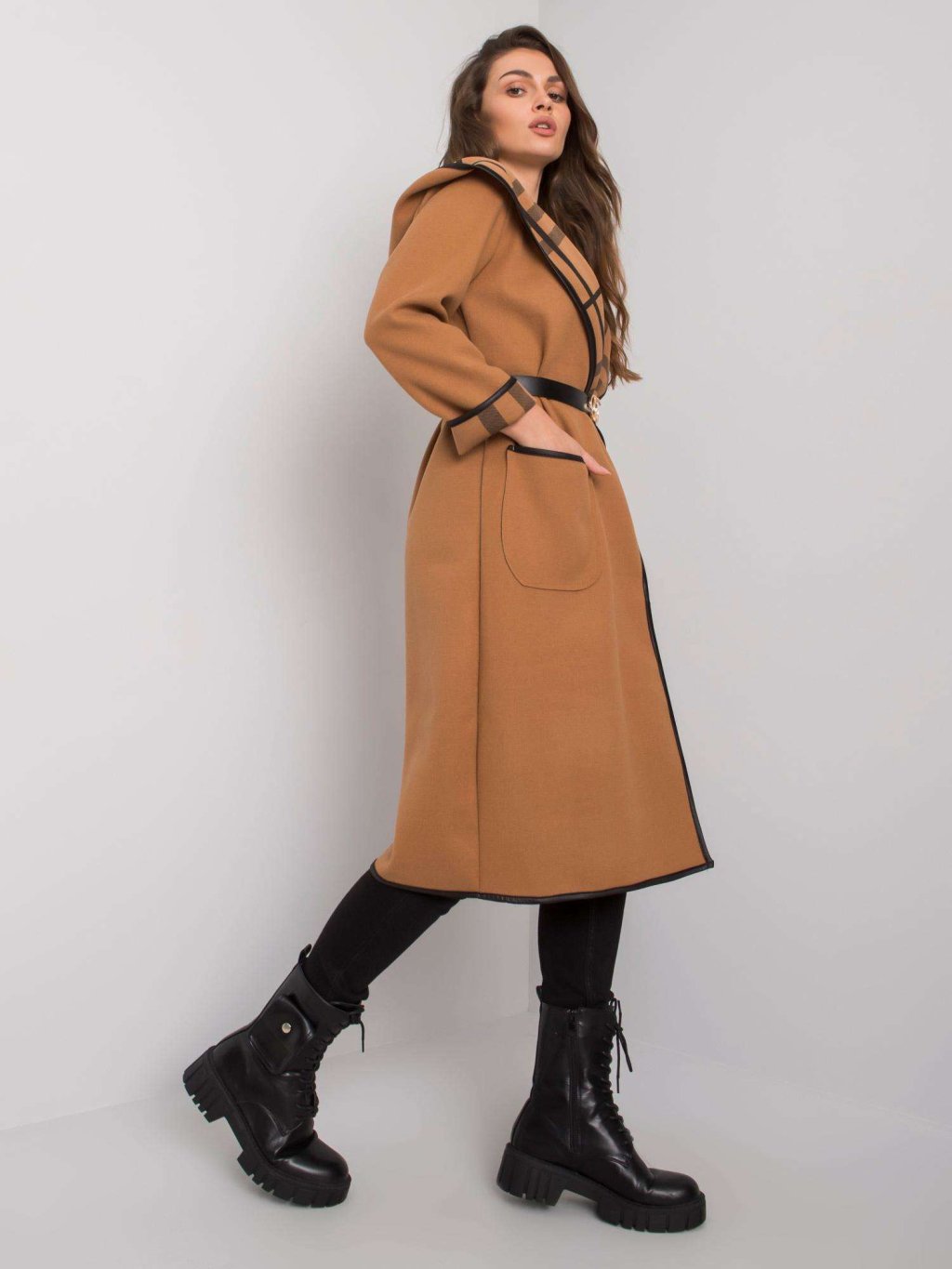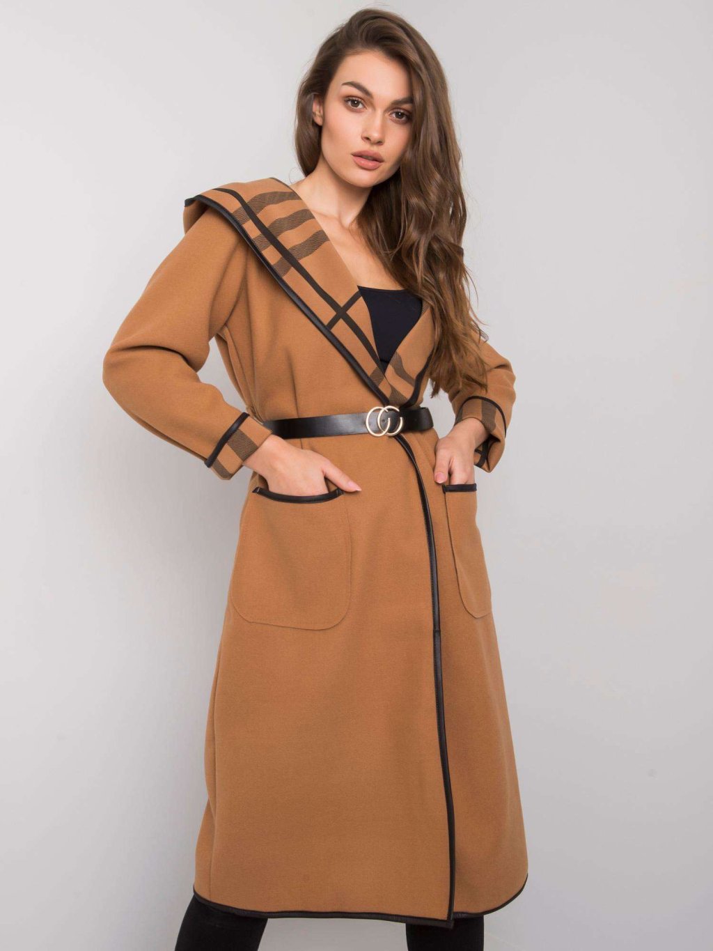 Dámský hnědý kabát s páskem a prodlouženou délkou 🤎🧥