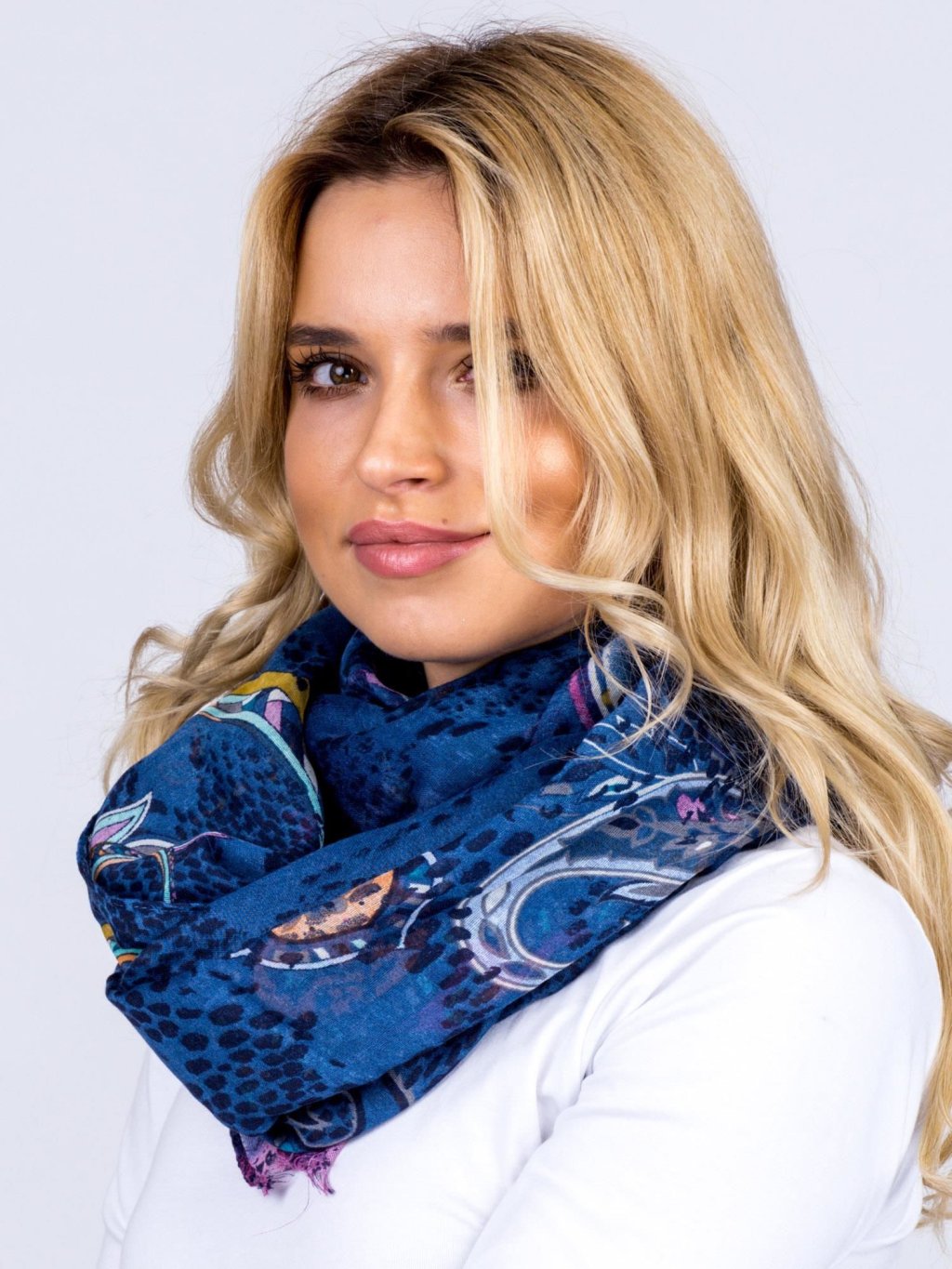 Tento tenký dámský šátek s jemným lidovým a zvířecím vzorem v tlumených barvách je dokonalým doplňkem pro každodenní i slavnostní nošení. Díky své vzdušnosti a příjemnému viskózovému materiálu se krásně nosí po celý den – ať už do práce, na večírek nebo procházku městem. Stačí ho lehce přehodit kolem krku a váš outfit získá originální a hřejivý akcent.