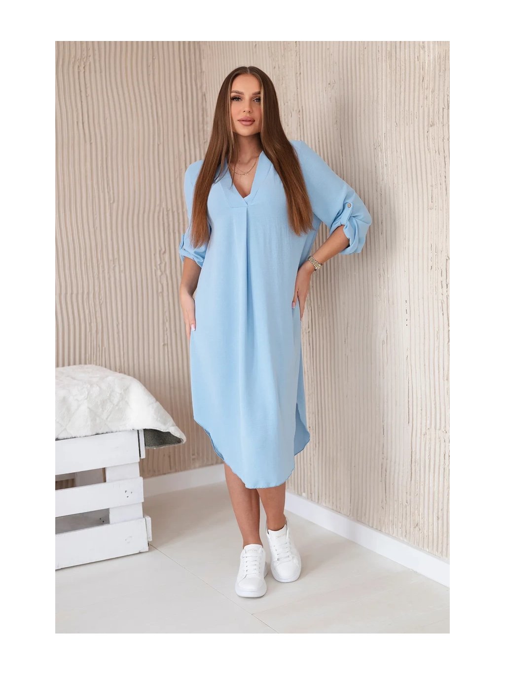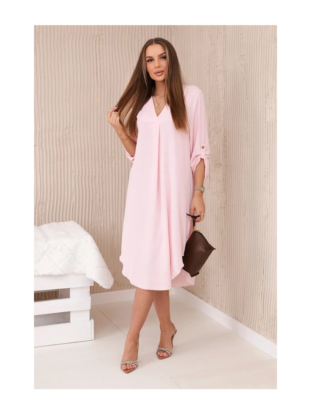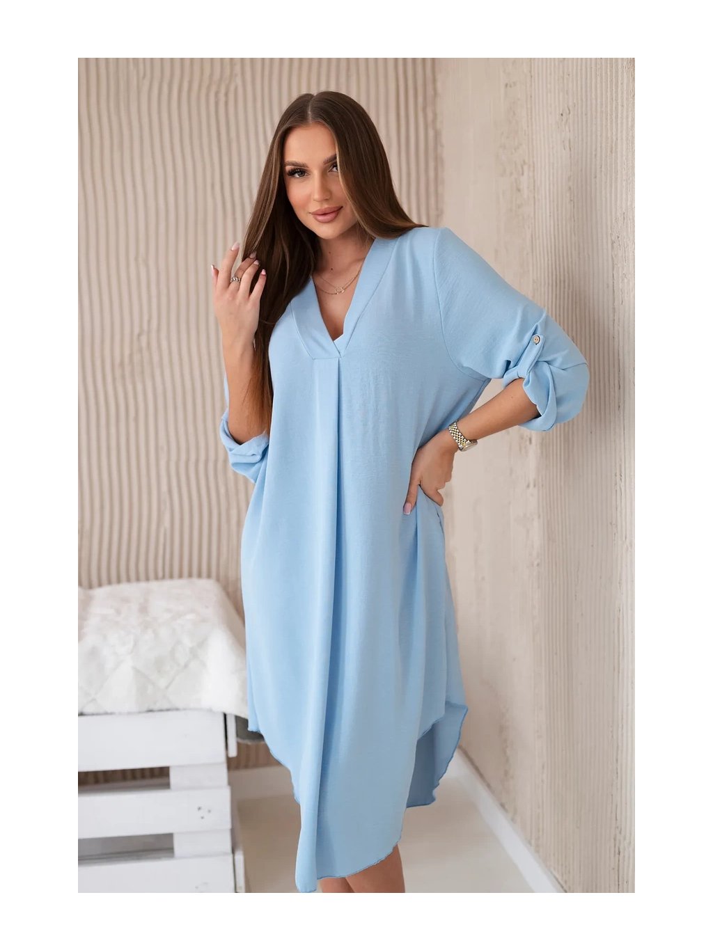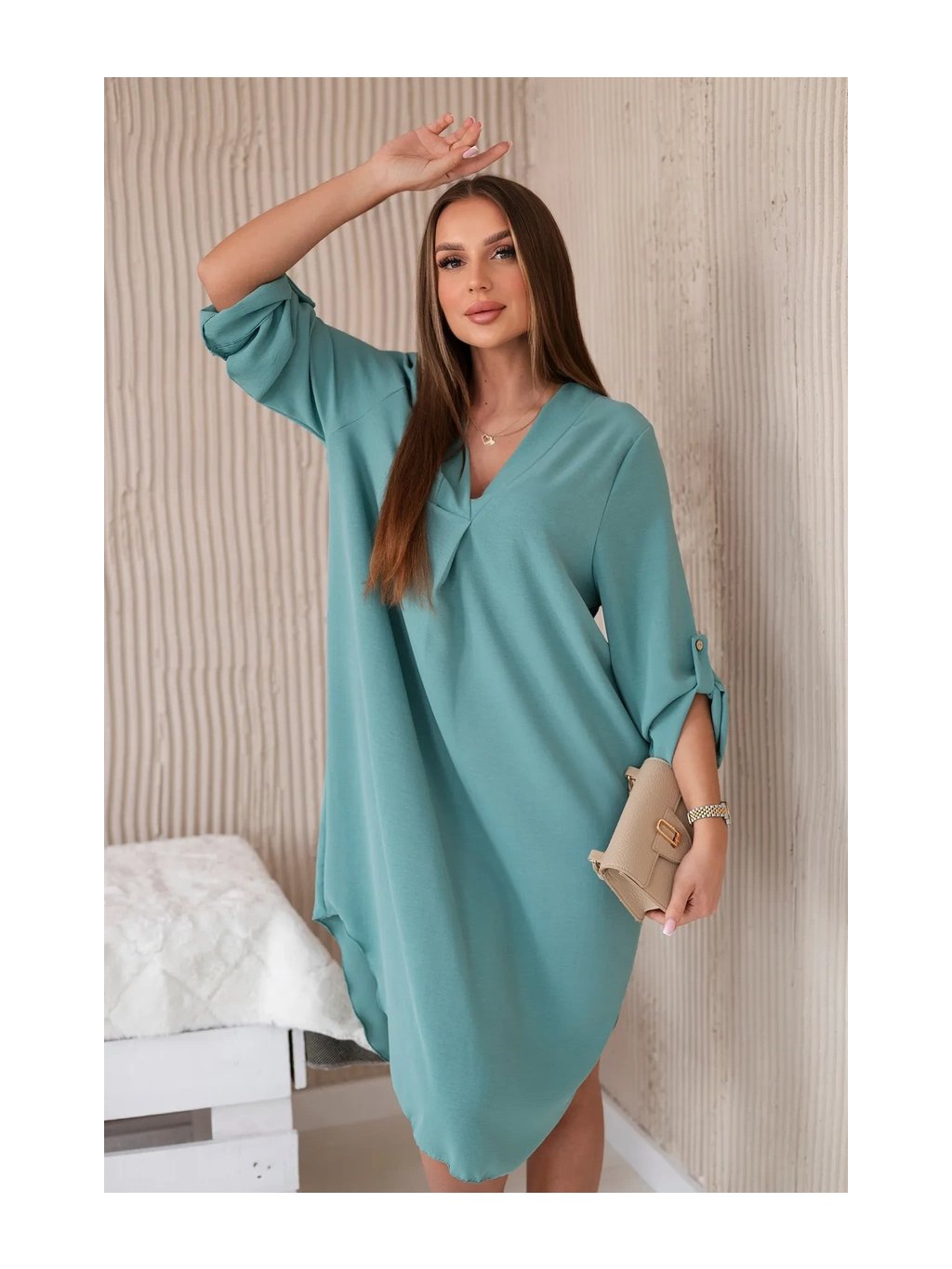 Šaty s výstřihem do V jsou klasickou a elegantní volbou, která zvýrazňuje krk a dekolt a dodává siluetě štíhlý a elegantní vzhled. Tento univerzální styl oblékání funguje perfektně za mnoha různých okolností, od formálnějších událostí až po neformální setkání. Šaty s výstřihem do V jsou díky své univerzálnosti skvělou volbou pro ženy všech typů postavy a střihů. Dá se nosit k podpatkům na večerní výlety, k balerínkám na každodenní schůzky a dokonce i k džínové bundě pro příležitostnější příležitosti. Ne nadarmo jsou šaty s výstřihem do V považovány za klasické, protože zdůrazňují přednosti postavy a zároveň dodávají eleganci a ženskost každému stylingu. Velikost je univerzální a bude vhodná pro ženy, které nosí velikost S, M nebo L.