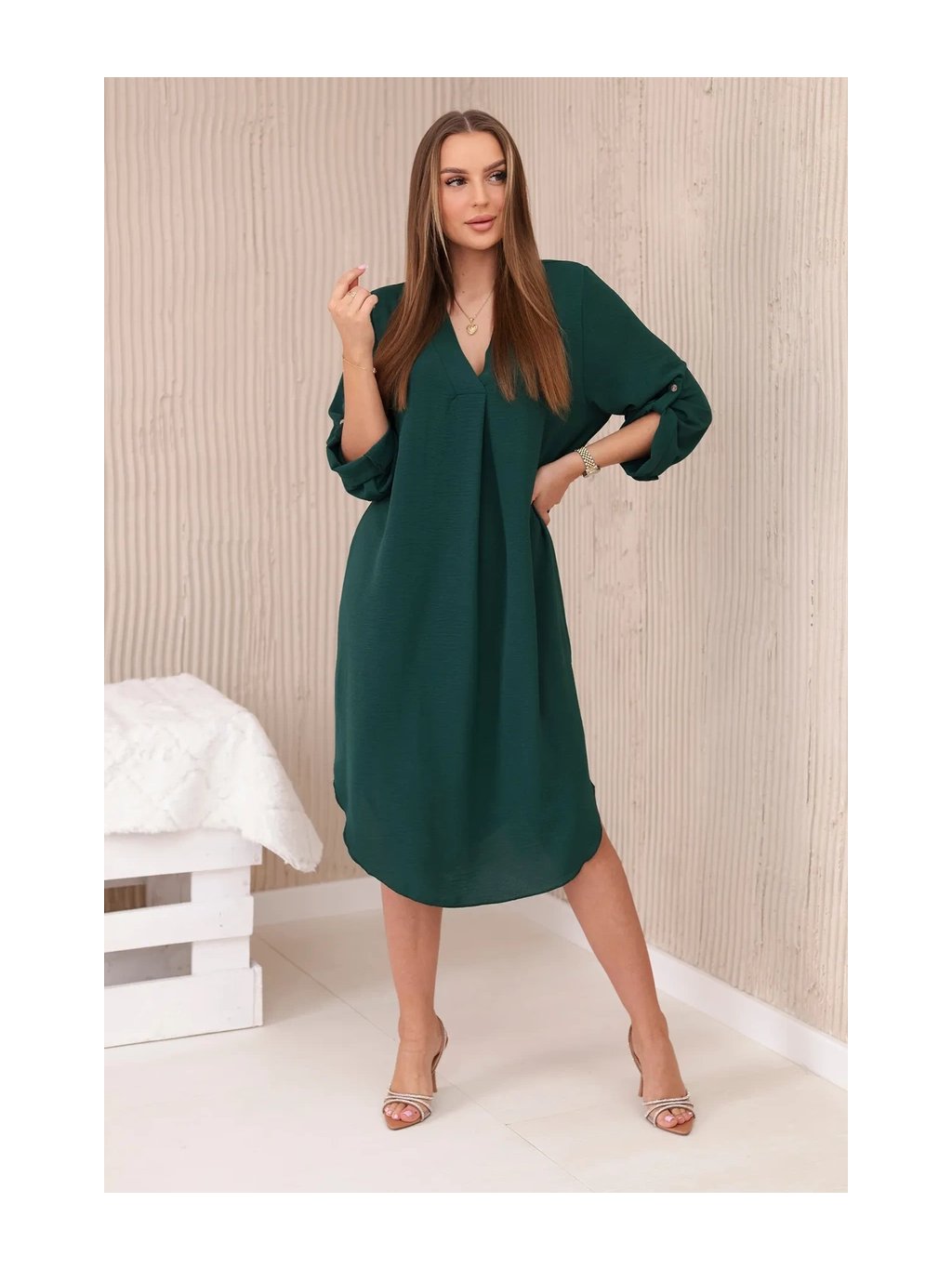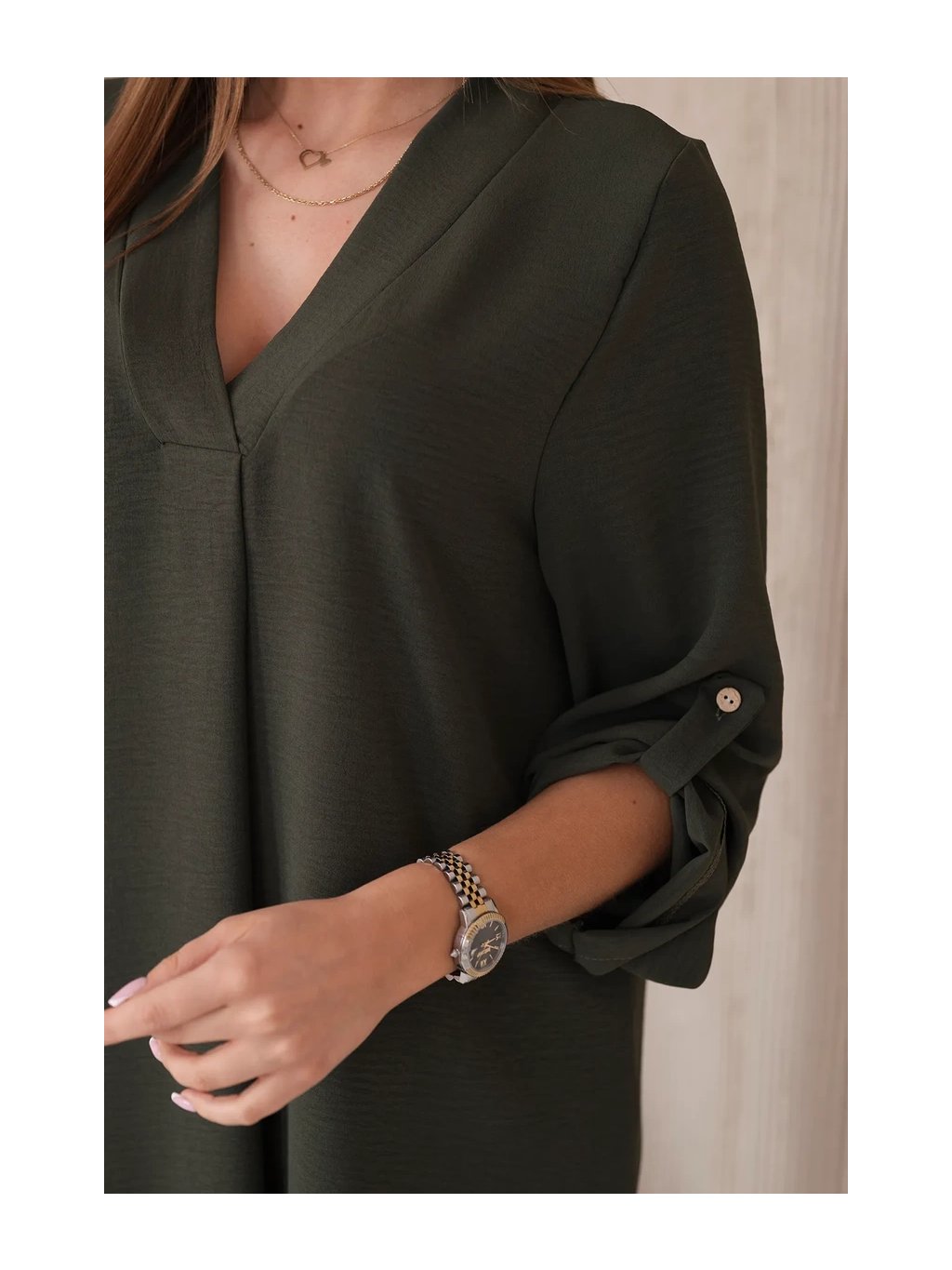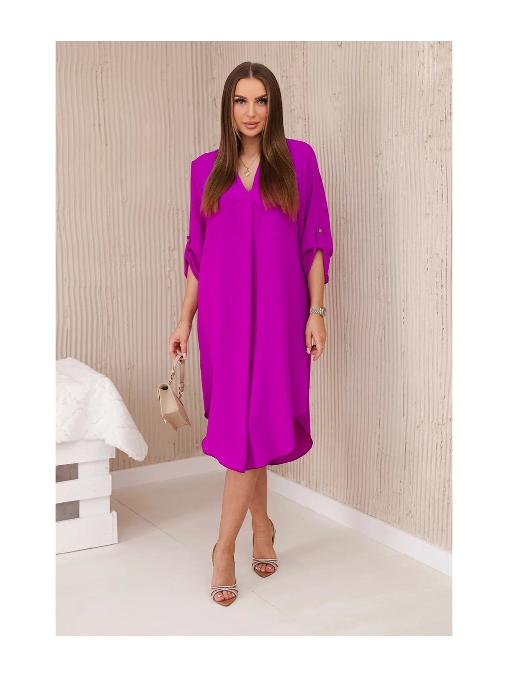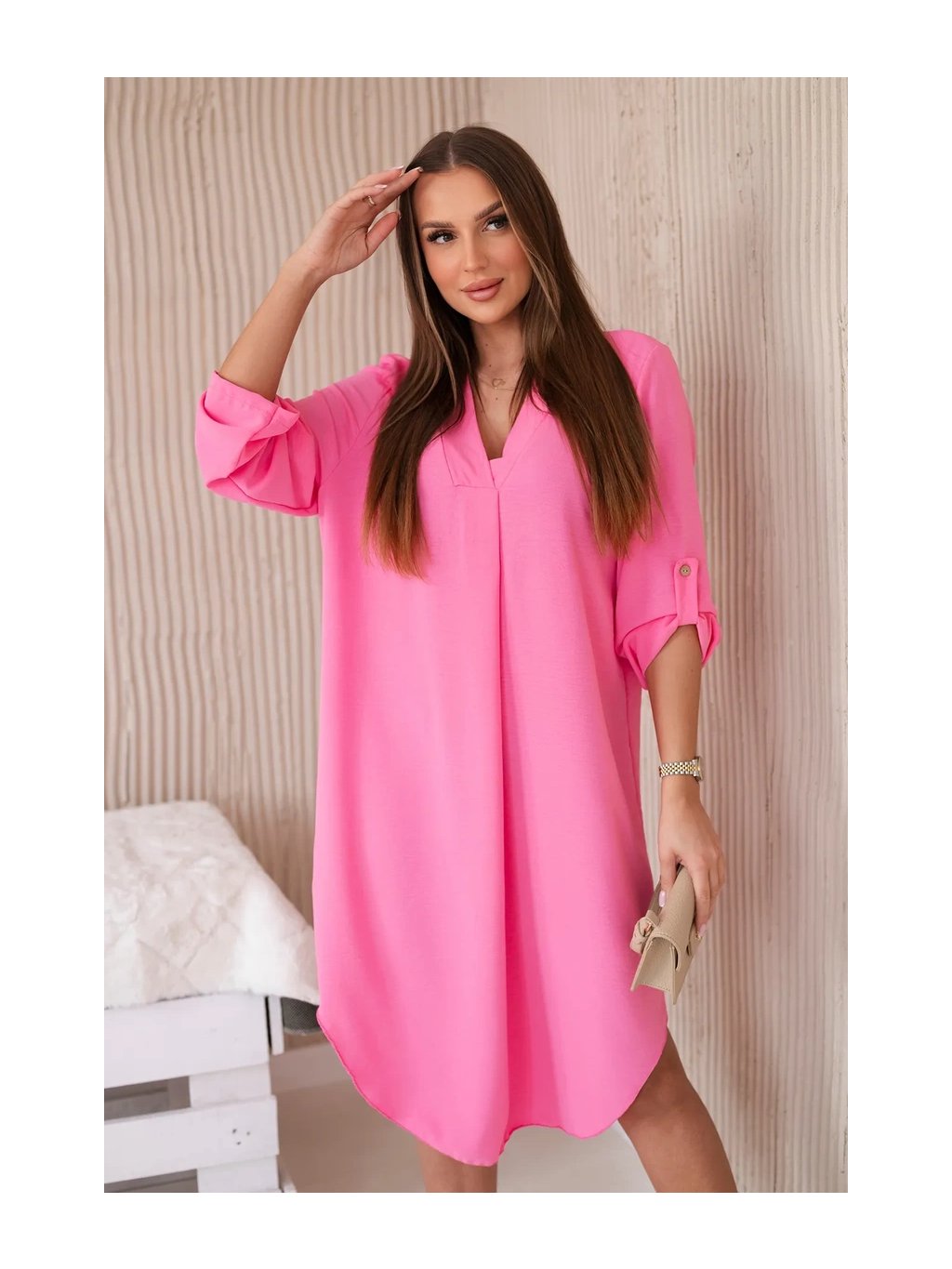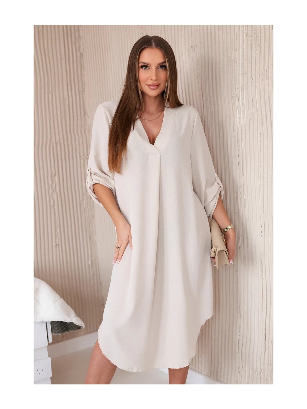 Šaty s výstřihem do V jsou klasickou a elegantní volbou, která zvýrazňuje krk a dekolt a dodává siluetě štíhlý a elegantní vzhled. Tento univerzální styl oblékání funguje perfektně za mnoha různých okolností, od formálnějších událostí až po neformální setkání. Šaty s výstřihem do V jsou díky své univerzálnosti skvělou volbou pro ženy všech typů postavy a střihů. Dá se nosit k podpatkům na večerní výlety, k balerínkám na každodenní schůzky a dokonce i k džínové bundě pro příležitostnější příležitosti. Ne nadarmo jsou šaty s výstřihem do V považovány za klasické, protože zdůrazňují přednosti postavy a zároveň dodávají eleganci a ženskost každému stylingu. Velikost je univerzální a bude vhodná pro ženy, které nosí velikost S, M nebo L.