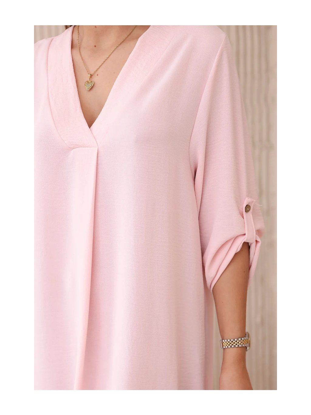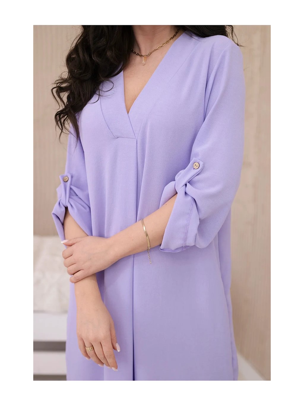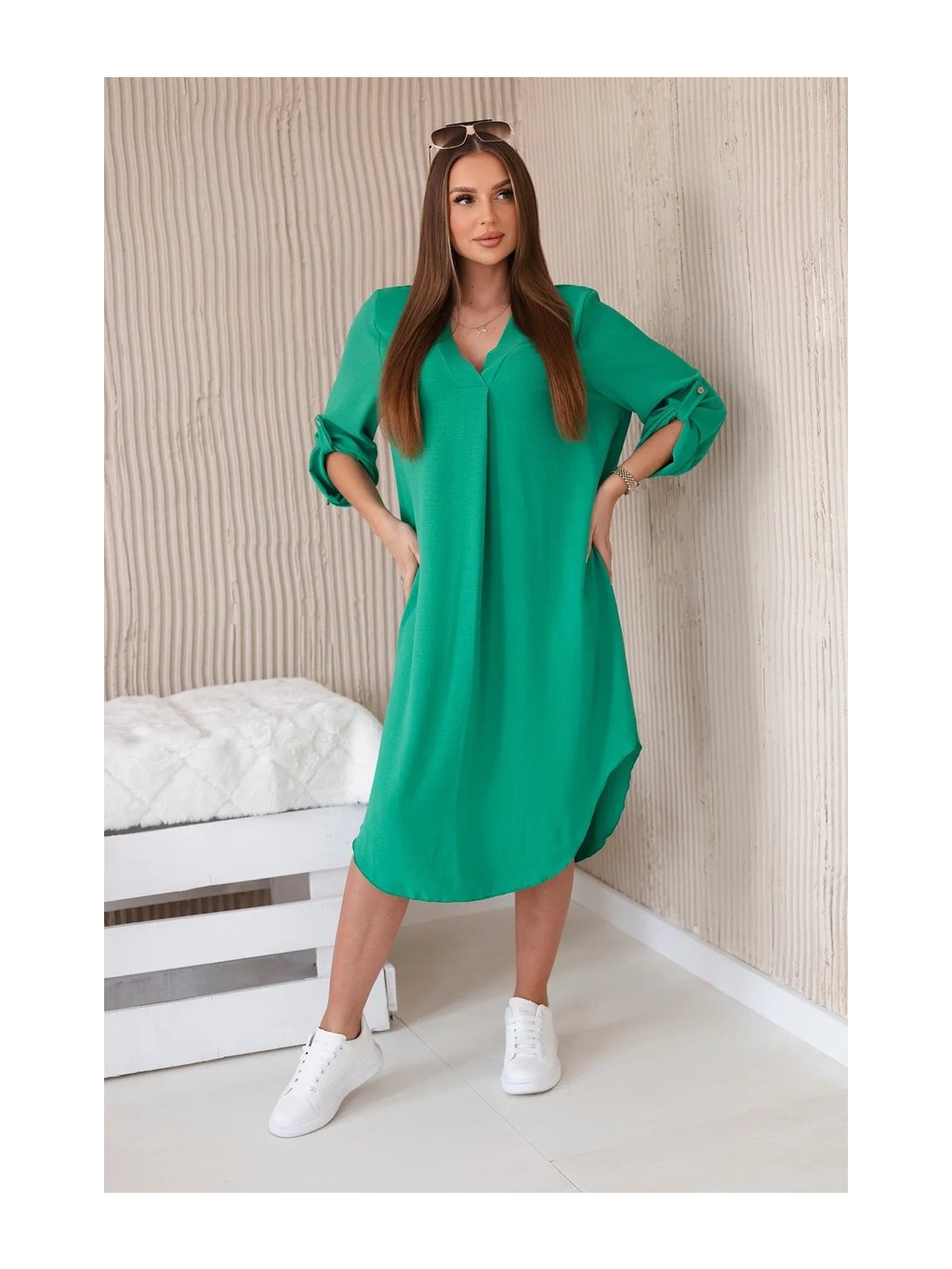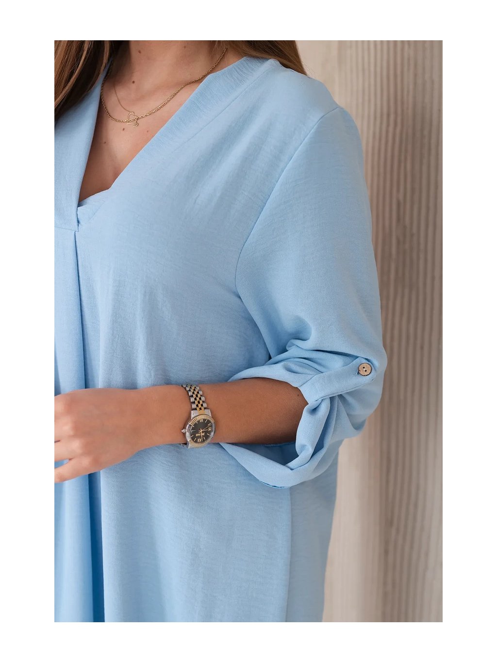 Šaty s výstřihem do V jsou klasickou a elegantní volbou, která zvýrazňuje krk a dekolt a dodává siluetě štíhlý a elegantní vzhled. Tento univerzální styl oblékání funguje perfektně za mnoha různých okolností, od formálnějších událostí až po neformální setkání. Šaty s výstřihem do V jsou díky své univerzálnosti skvělou volbou pro ženy všech typů postavy a střihů. Dá se nosit k podpatkům na večerní výlety, k balerínkám na každodenní schůzky a dokonce i k džínové bundě pro příležitostnější příležitosti. Ne nadarmo jsou šaty s výstřihem do V považovány za klasické, protože zdůrazňují přednosti postavy a zároveň dodávají eleganci a ženskost každému stylingu. Velikost je univerzální a bude vhodná pro ženy, které nosí velikost S, M nebo L.