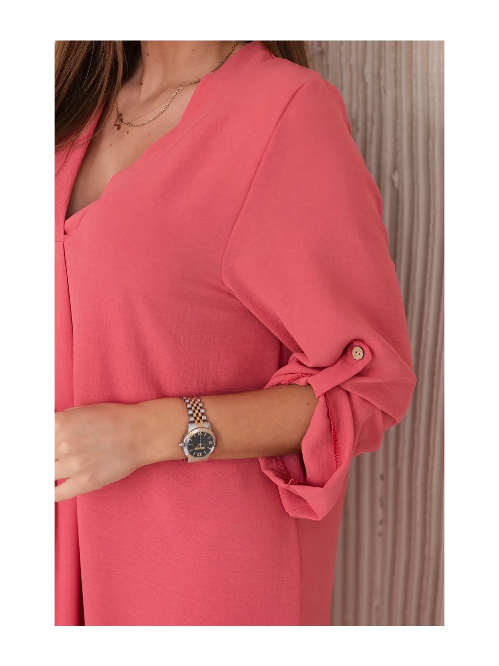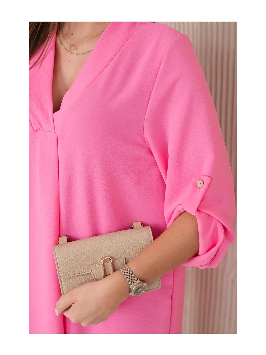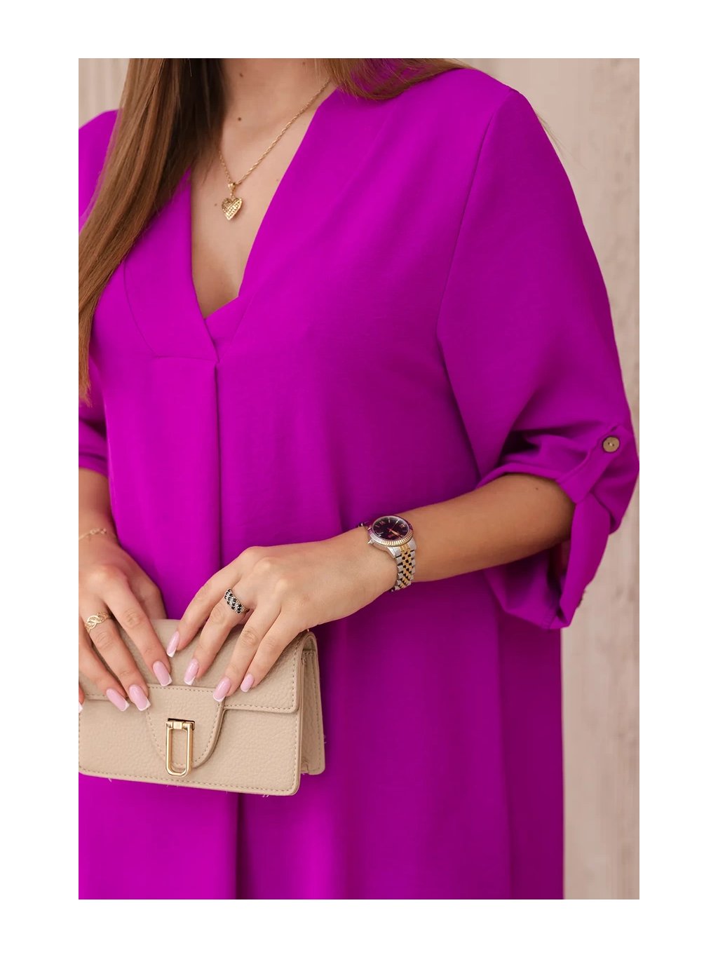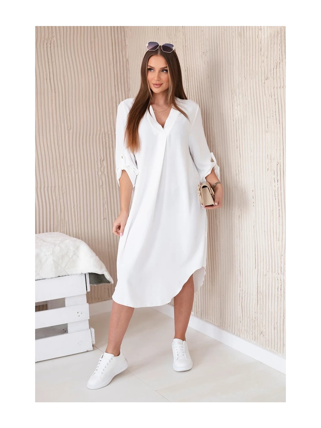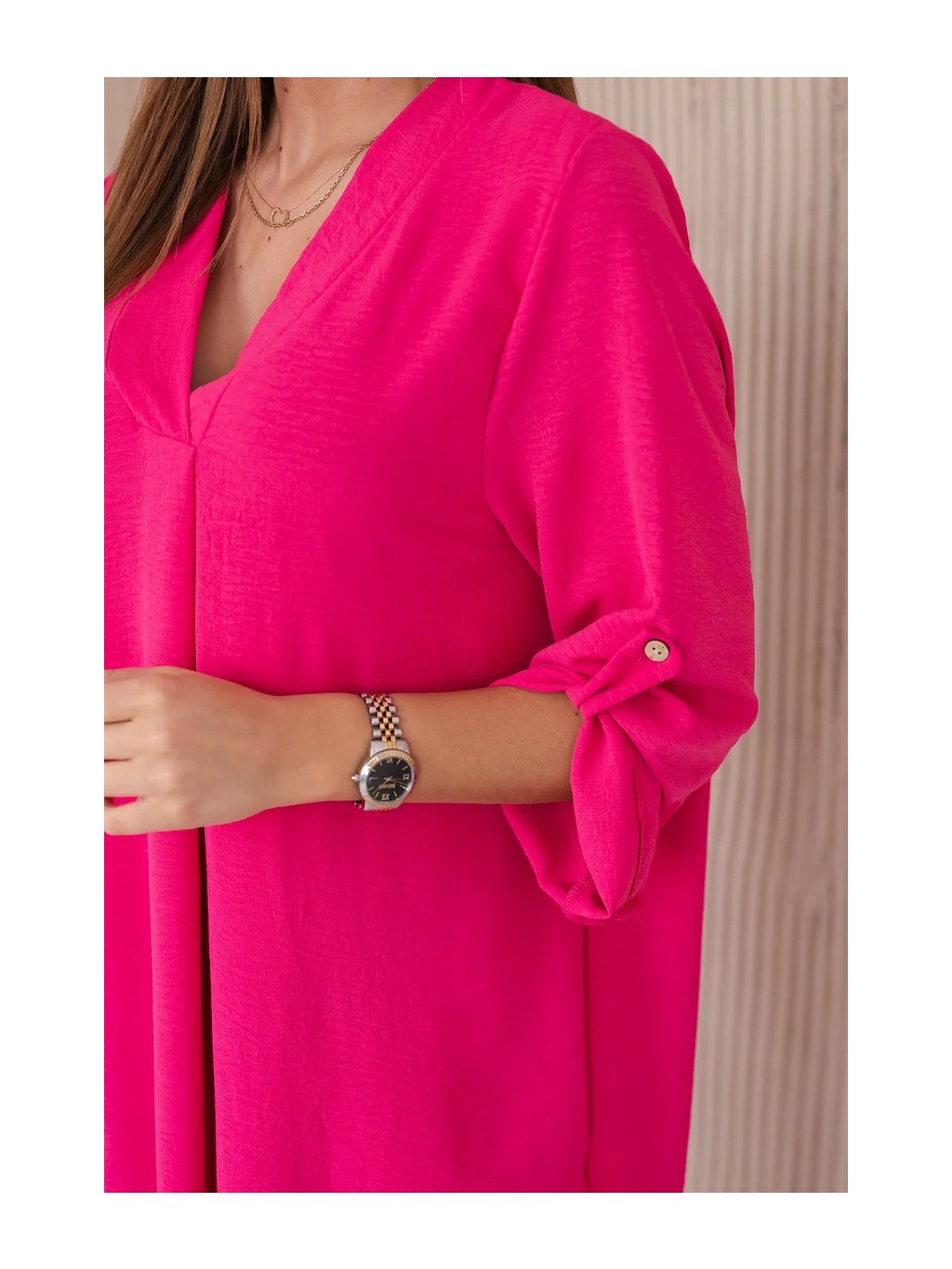 Šaty s výstřihem do V jsou klasickou a elegantní volbou, která zvýrazňuje krk a dekolt a dodává siluetě štíhlý a elegantní vzhled. Tento univerzální styl oblékání funguje perfektně za mnoha různých okolností, od formálnějších událostí až po neformální setkání. Šaty s výstřihem do V jsou díky své univerzálnosti skvělou volbou pro ženy všech typů postavy a střihů. Dá se nosit k podpatkům na večerní výlety, k balerínkám na každodenní schůzky a dokonce i k džínové bundě pro příležitostnější příležitosti. Ne nadarmo jsou šaty s výstřihem do V považovány za klasické, protože zdůrazňují přednosti postavy a zároveň dodávají eleganci a ženskost každému stylingu. Velikost je univerzální a bude vhodná pro ženy, které nosí velikost S, M nebo L.